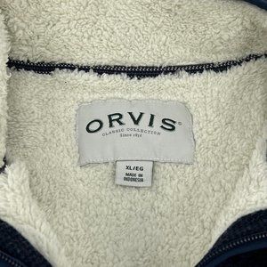 Men's Orvis Brighton 1/4 Zip Sherpa Lined Pullover Sweater Blue XL Pockets