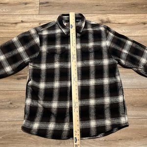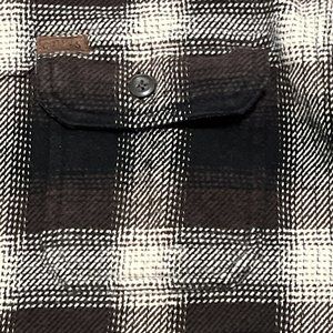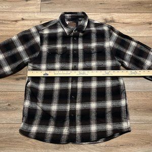 Men's Orvis Button Up Plaid Flannel Shirt LARGE Brown Black Pockets Shacket
