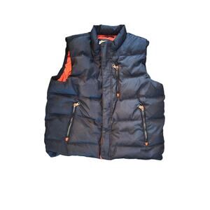 Pre owned men's Orvis Puffer Vest size extra large in very good condition. Vest is mostly navy blue with orange accents.
