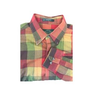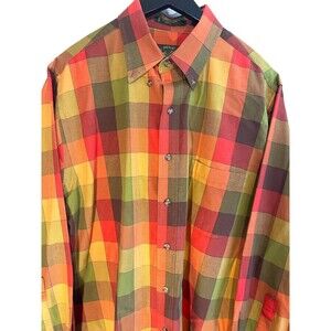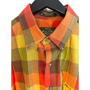 Men's Orvis Signature Long Sleeve Button Up Orange Green Red Check Size Large