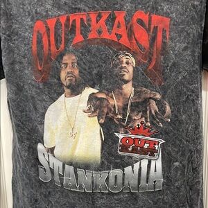 Show off your style with this Outkast graphic tee. Featuring a bold design on a black background, it's perfect for fans and casual wear alike.