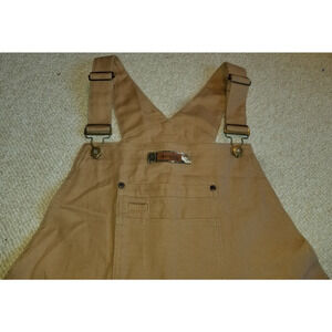 Men's Overalls-COLUMBIA-PHG- Handsome men's brown cotton stretch canvas carpenter 'Performance Hunting Gear' bib overalls with reenforced knees. Overalls have adjustable straps and hem bib, three front pockets and four back pockets. 98% Cotton, 2% Spandex. Marked Size: XL (Length= 59 inches, Waist= 43 inches, Inseam= 29 inches). Excellent condition. Non-smoking home. Thanks for looking.