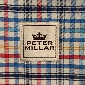Men's PETER MILLAR Size L Plaid Button Down Shirt Checked Colorful 100% Cotton. Good pre-owned condition.