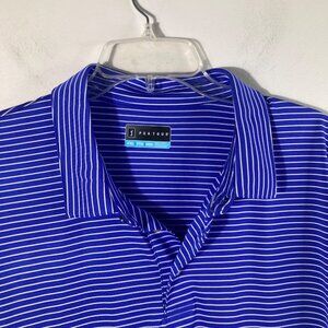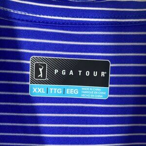 Mens PGA Tour Golf Polo Shirt Short Sleeve Striped 2XL Blue White Polyester