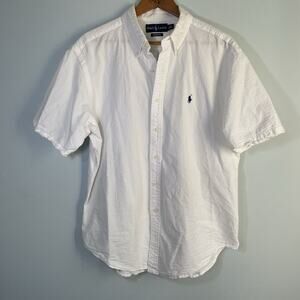 Mens POLO Ralph Lauren Seersucker Fabric White Short Sleeve Button Down Shirt XL