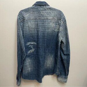 Rare blue denim shirt by PRPS. Features a unique textured stitched pattern. Ideal for casual wear.