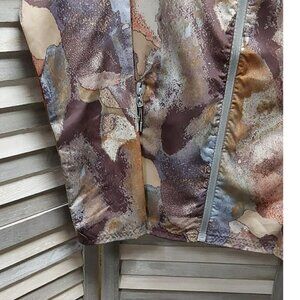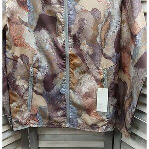 The wind-resistant design and water-resistant construction of this jacket help you get through all kinds of weather, no matter where you go. Lightweight recycled polyester fabric allows effortless, comfortable movement and easy packability for travel. It has a full zip closure, hood and thumbholes for protective wear, plus secure side entry pockets for handy storage of your essentials.