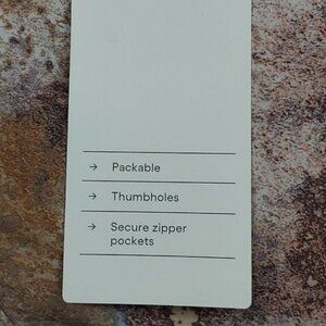 Garment Details: Zippered Pocket, Packable, Thumbholes Water-Resistant Construction, Wind-Resistant Fabric