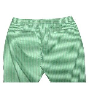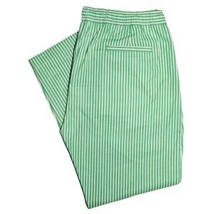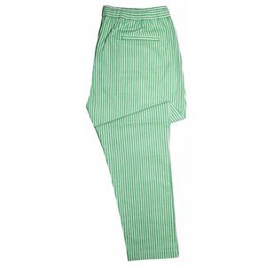 A must-have style in every man’s wardrobe, you will never look boring again with these striped jogger pants in green and white. Elegantly made with high quality craftsmanship in a straight fit, flat-front style from premium quality cotton, these trousers feature a drawstring closure with an elastic waistband and four pockets. This pair of men's pants is perfect for work and everyday wear, summer events, parties and beach vacations.