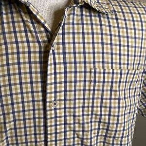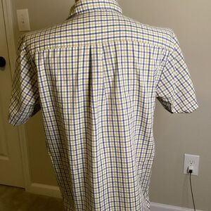 Mens Patagonia Button Up Short Sleeved Top white/tan/blue medium