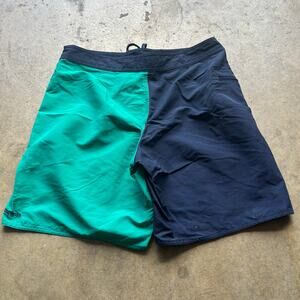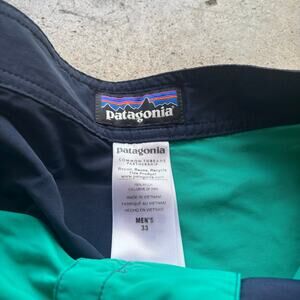 Men's Patagonia Green Blue Minimalist Wavefarer Board Shorts Swim Trunks Sz 33