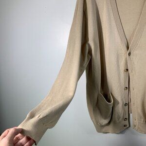 Mens Paul Fredrick Grunge 90s Button Cardigan Silk Cotton Cashmere Tan XL