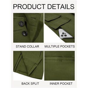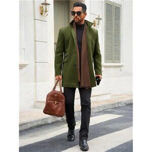 The men's casual slim fit trench coat is made of high quality polyester material. It feels like wool blend to the touch, soft, skin friendly, and durable. Good capability of wind resistance and warmth, so you can stay cozy and comfortable even in the coldest temperatures