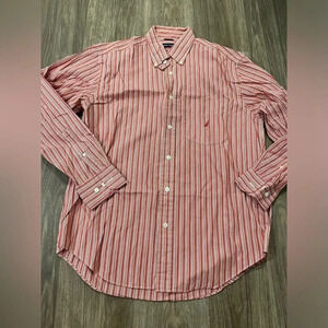 Men's Peach and Yellow Nautica Buttoned down shirt Size: Medium