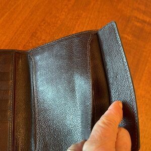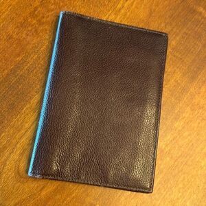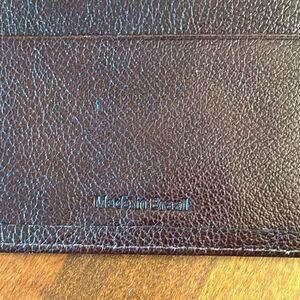 EUC. Just a lovely made in Brazil Pebble Leather Wallet / Passport Lapel Case. There is a logo (see 2nd photo) but I am not able to identify it. Stamped Made In Brazil. Minor wear on the corners, see last 2 photos.