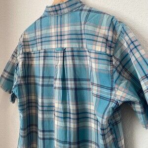 Men's Pendleton Button Down Short Sleeve Blue & Orange Plaid Shirt - Siz…