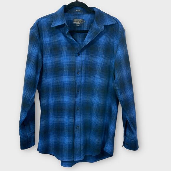 Men's Pendleton long sleeve blue plaid button down Mason shirt cotton medium