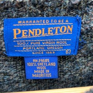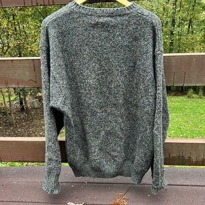 Men’s Pendleton knit sweater. Measurements are as follows. Armpit to armpit 23 inches shoulder to shoulder 21 inches top of back collar to bottom hem of sweater 28 inches. Great condition the net is multicolored. It looks gray from far away but up close, there hues of, blues, browns and black ( see 2nd picture)