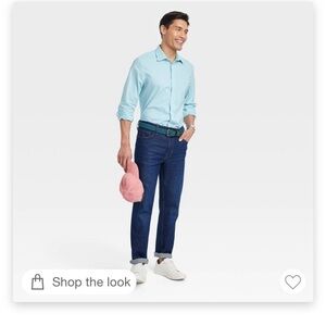 Men's Performance Dress Standard Fit Long Sleeve Button-Down Shirt Aqua Blue L