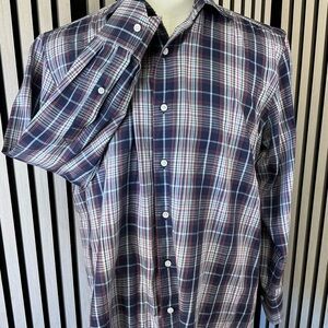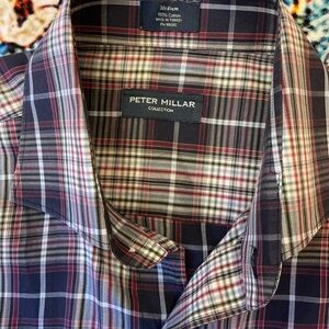 Men’s Peter Millar 100% Cotton Blue/Burgandy Button Down Long Sleeve Shirt Sz M