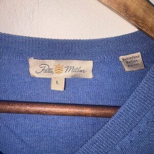 Men's Peter Millar 100% Merino Wool V-Neck Blue Sweater Timeless Classic