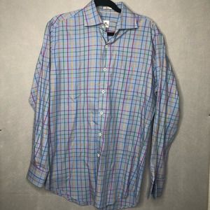 Men's Peter Millar Long Sleeve Button Up Shirt Size M 100% Cotton Plaid