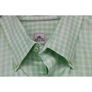 This is a really nice Men's Peter Millar Long Sleeved Shirt that is a size XL. It looks like a Spring shirt with the yellow green and white. It is a great quality shirt. It is 100% Cotton. In great condition.