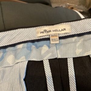 Mens Peter Millar flat front slim fit pants, size 34”W x 32”L, in navy blue