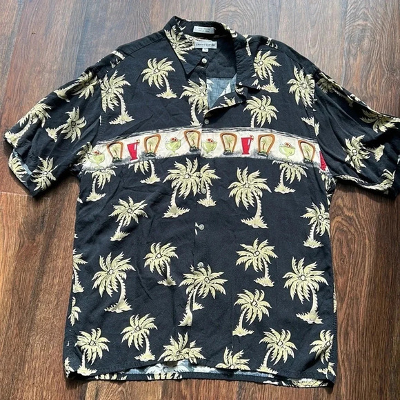 Keywords: Men's Casual Button Down Shirt, Hawaiian , Tropical, Button Down Shirt, Alcoholic Beverage, Palm Tree, Spring Break, Dad Style, Vintage, Shirt with Palm Trees