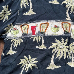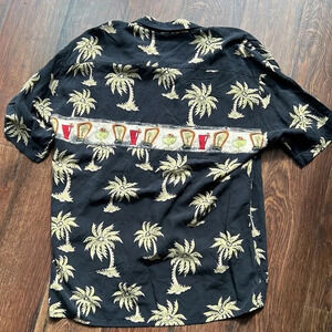 Black Shirt with tan palm trees and images of alcoholic beverages