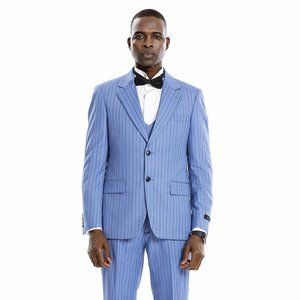 Men's Pinstripe 3-Piece Suit w/ Double Breasted Vest, Smokey Blue