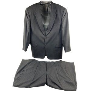 Mens Pinstripe Suit Jacket & Pants Set 2-Button Gray Classic Fit 100% Wool 40L