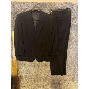 Men's Pinstripe Wool Suit 2 Piece Classic Fit Multicolor Size L Formal