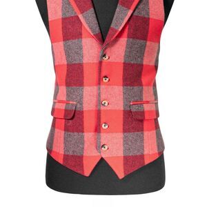 Turn heads at any event with this handmade men's lambswool waistcoat, crafted for sharp style and standout sophistication. Designed in a rich red, gray, and brown plaid check pattern, this elegant vest blends vintage charm with modern tailoring, making it the perfect choice for weddings, formal events, groom attire, or upscale evening wear.