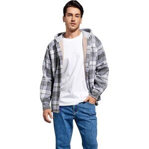 Stay warm and stylish with this Men's Cotton Plaid Flannel Shirt Jacket, designed for comfort, warmth, and durability. Featuring a 100% cotton flannel shell and soft beige sherpa lining, this versatile jacket is perfect for layering in cold weather. The drawstring hood, button closure, and fleece-lined sleeves add extra insulation, while the classic plaid design offers a timeless, rugged look.