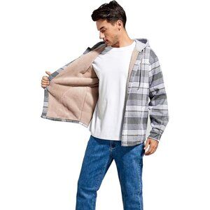 ⭐ Men's Plaid Flannel Shirt Jacket | Sherpa Lined, Hooded, Warm Button-Down