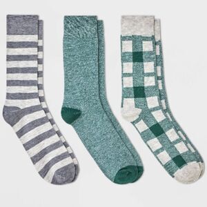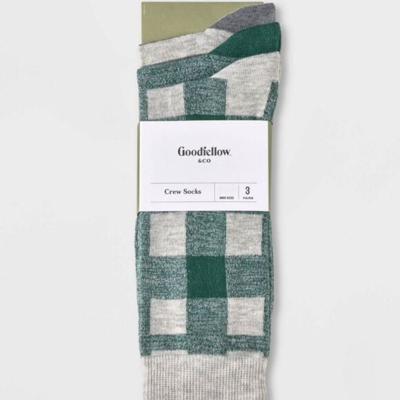 Men's Plaid Stripe Socks 3pk - Goodfellow & Co™ Cream/Green 7-12