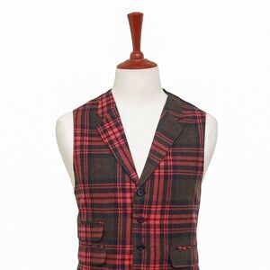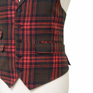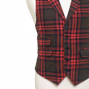 Mens Plaid Vest 44R Red Brown Wool Waistcoat XL Formal Wedding Groom Prom Party