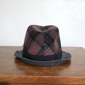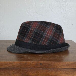 Mens Plaid Wool Fedora Hat Classic Checkered Red Black Gray Casual