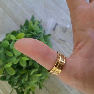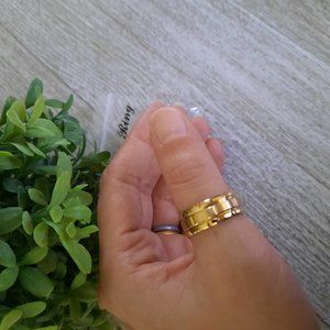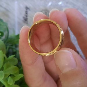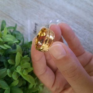 Create your own unique style with this simple yet stunning gold-plated, stainless steel wedding band featuring a wide-band, double grooved style. Crafted from high-quality hypoallergenic stainless steel, this unisex designed ring is built to withstand daily wear and tear, comfortable fit, ensuring long-lasting durability and resistance to scratches. Suitable for casual wear to formal events. Could be used as a Wedding Band, Promise Ring, Thumb Ring, Fashion Statement Ring or Stacking Ring!