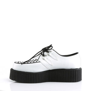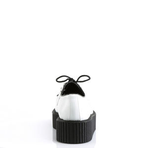 2" Platform Lace Up Gothic Creeper Shoes. White Faux Leather.