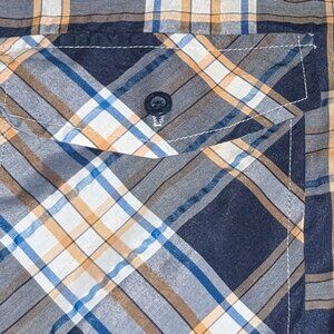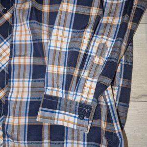 Please read before buying. No holes, stains, or fading, but see last picture, one button at bottom of shirt is missing.