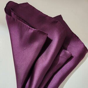 This pocket square is a luxurious 100% satin scarf in a rich purple hue. It is perfect for adding a touch of elegance to any outfit.