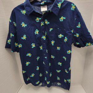 Mens Pokemon Button Polo SS Shirt Nintendo Squirtle Print Blue Pikachu Game M