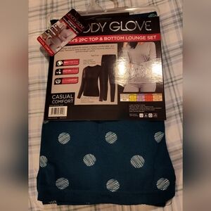 Comfortable women's two-piece lounge set in a beautiful dark, deep green with polka dots. Super cute! Includes top and bottom for ultimate relaxation