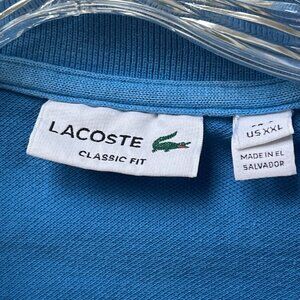 The LaCoste Classic Fit Blue Button Up Polo in Men's size XXL features a timeless solid design with a V-neck and short sleeves, perfect for a classic and versatile style. Made from 100% cotton knit fabric, this pullover is easy to care for with machine washable instructions. The iconic Lacoste brand adds a touch of luxury to this wardrobe staple, suitable for all seasons. Ideal for women looking for a high-quality and stylish top for everyday wear.