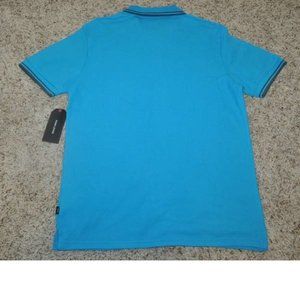 Mens Polo Adam Levine Blue Medium Tipped Pique Short Sleeve Collared Knit