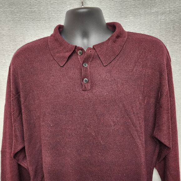 Men's Polo Long Sleeve Sweater Geoffrey Beene XL Maroon 90s Business Casual