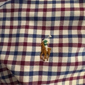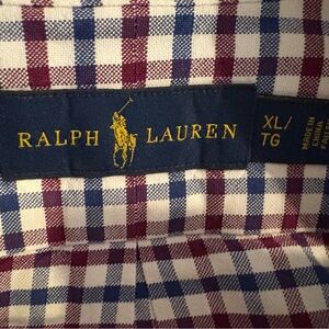 Men’s Polo Ralph Lauren Burgundy Navy Mini Check Button-Down Shirt Size XL TG