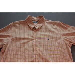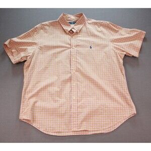 Men's Polo Ralph Lauren Classic Button Down Orange Plaid Dress Shirt Size XXL